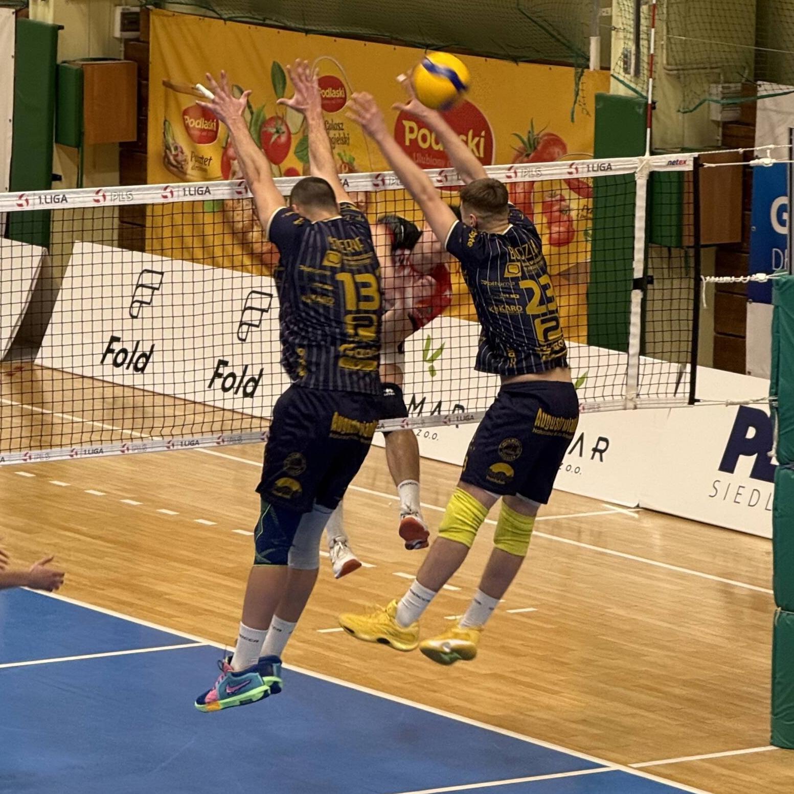 Siatkarze KS Necko Augustów przegrali na wyjeździe z KPS Siedlce 1:3 (16:25, 27:25, 22:25, 22:25) w sobotnim meczu 21. kolejki PLS 1. Ligi. Po pierwszym przegranym secie Augustowianie doprowadzili do wyrównania, ale dwa przestoje punktowe, po których goście nie byli już w stanie dogonić gospodarzy, zaważyły na ostatecznej porażce. Co ciekawe, nagroda MVP trafiła do Marcela Bakaja z Siedlec, który jest rozgrywającym i zaserwował tego dnia dwa asy. (Fot. PLS).