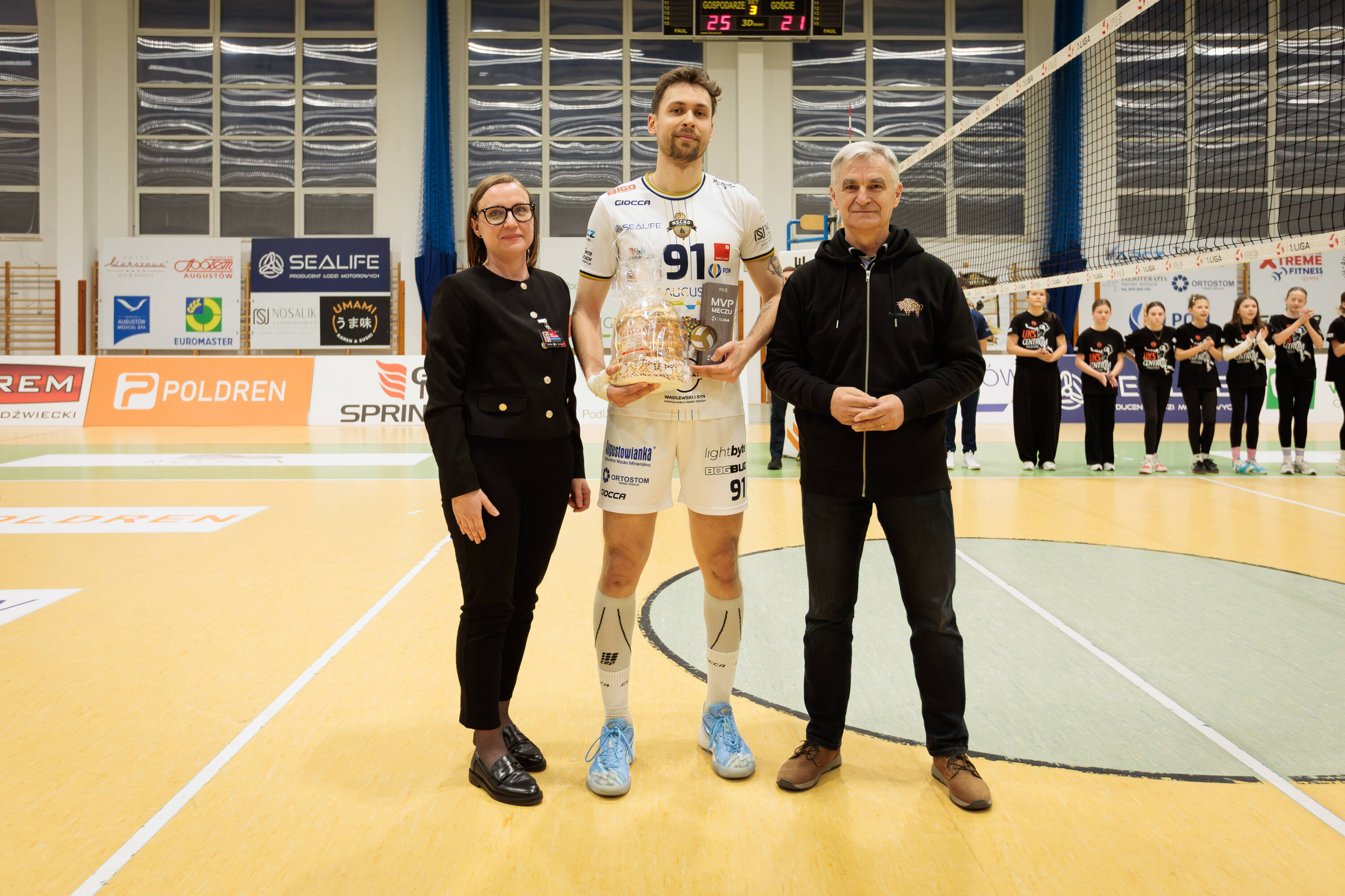Na zdjęciu: Róża Wachowska - komisarz PLS, Damian Baran i Bogdan Dyjuk - członek zarządu Województwa Podlaskiego (Fot. Michał Sobolewski/KS Necko Augustów)